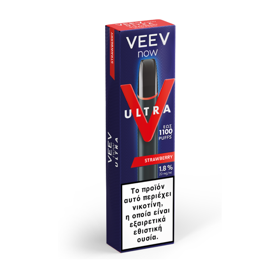 Ripe strawberry aromas in an ULTRA refreshing vaping experience. Up to 1100 puffs* of quality ingredients in a 2ml device. VEEV NOW ULTRA is a premium disposable vape designed to prevent burnt taste thanks to a low liquid detection system.