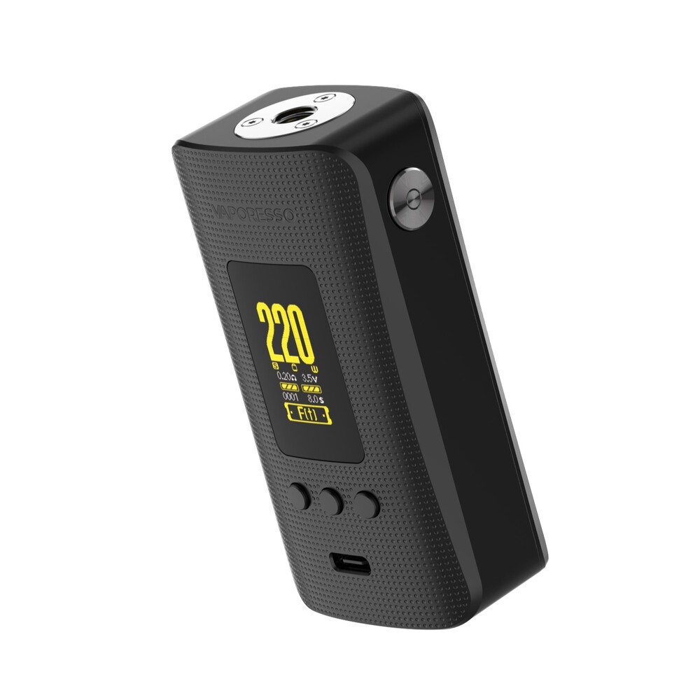 Features large, easy-to-read display, durable construction with soft touch feel and the lowest possible weight for a 220W box mod.